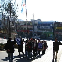 너무 추운 날씨에 벼랑 끝에서 피켓 들고 서 있다가 날아갈 뻔 했다는. . .ㅎㅎ
